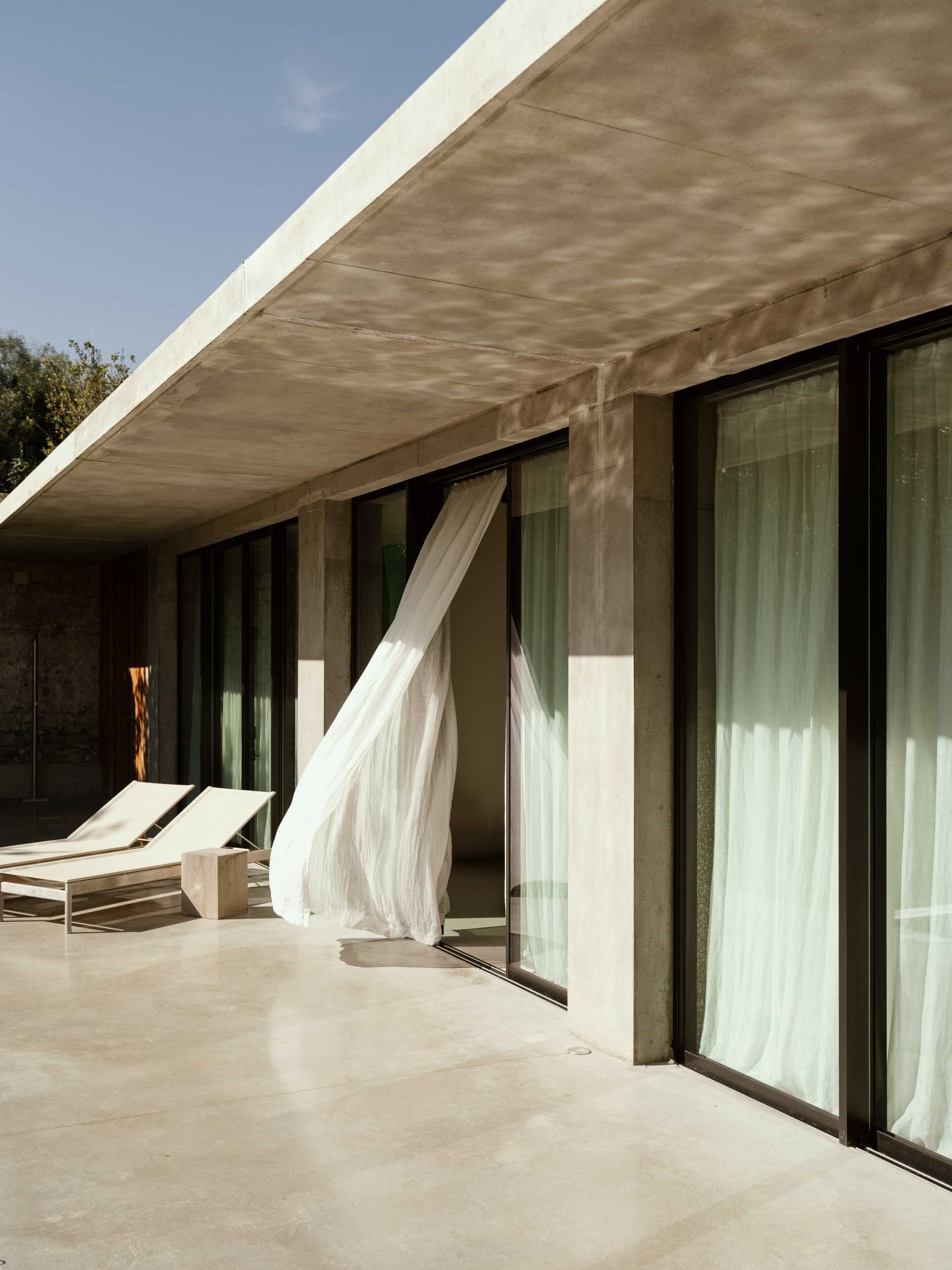 A central ambition was to achieve a sensitive balance between warm and cool materials. Between solidity and playfulness. The villa mirrors the rugged yet inviting nature of the coastline, allowing occupants to feel fully immersed in the landscape. Water plays a defining role in many of our projects, and here we introduced a natural-toned pool that echoes the sea nearby, reinforcing the dialogue between architecture and environment.
