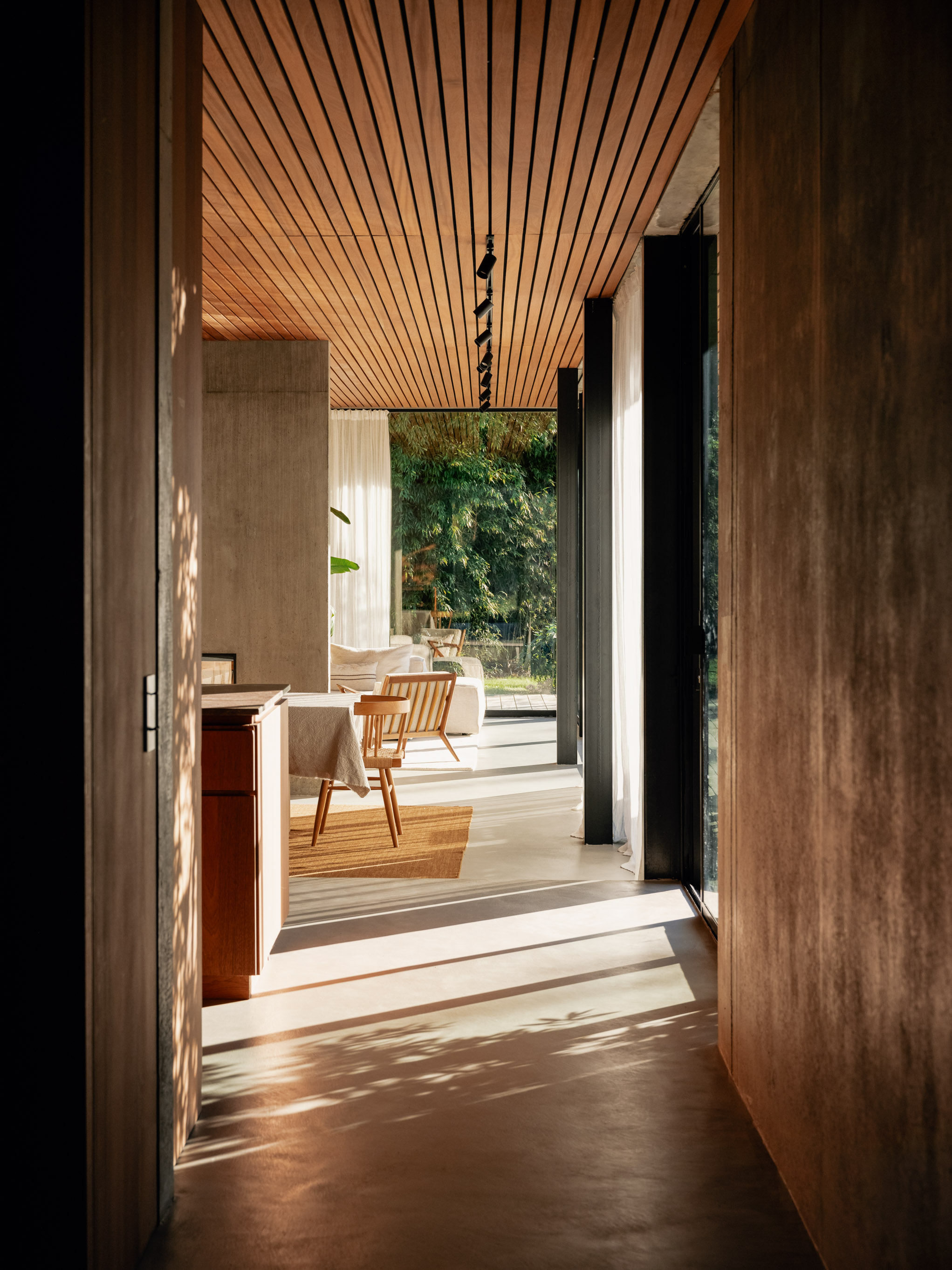 Careful attention was given to sightlines, daylight, and spatial experience. Each space is oriented to frame views and capture the changing light throughout the day, with the master bedroom standing out as a particularly intimate and atmospheric retreat.